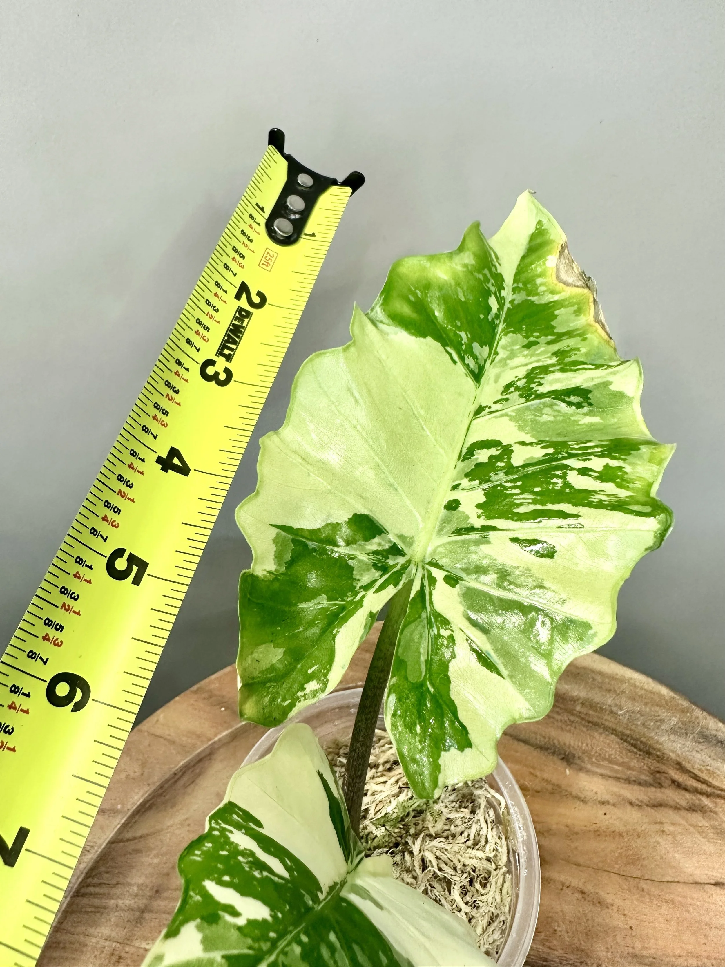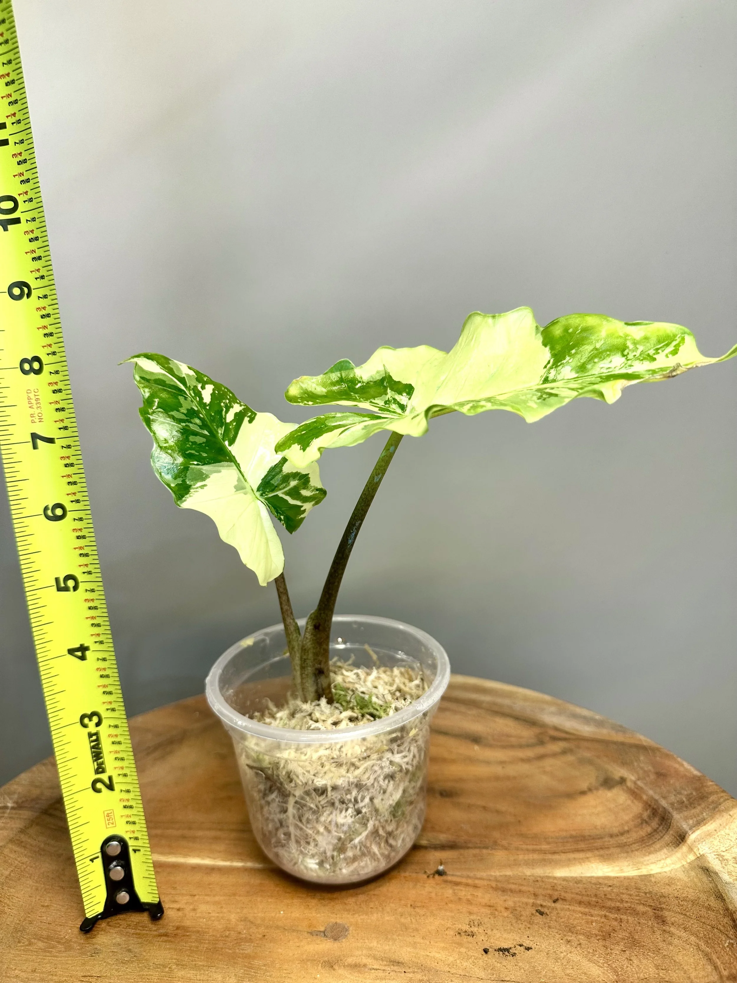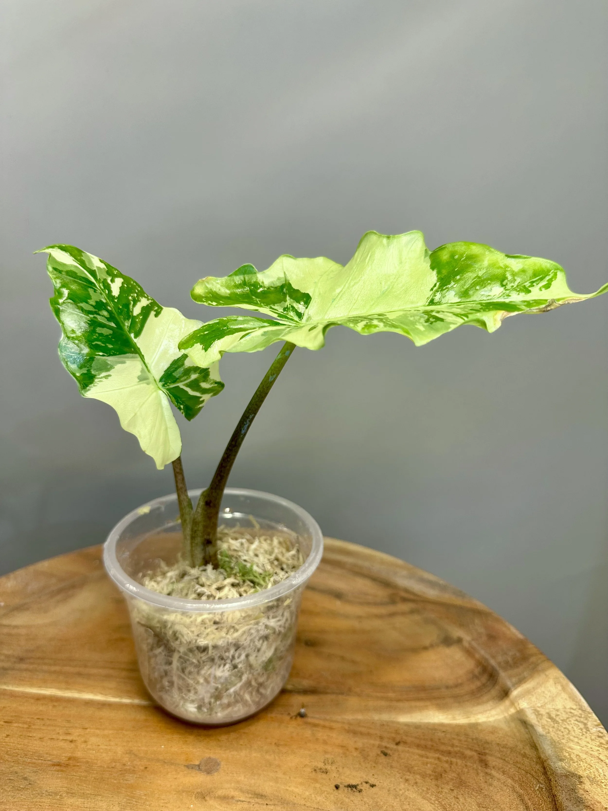 Rooted in moss for optimal growth and health, this rare beauty thrives with vibrant color and unique leaves. Her striking half-moon leaves and high variegation set her apart as a collector’s treasure, perfect for adding a touch of elegance to your plant collection.